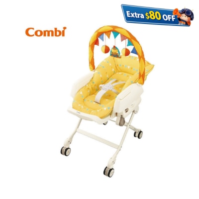 「希望宝宝睡醒的时候也会乖乖的」这些父母的心声,成就了这一台附玩具杆的按抚餐摇椅的诞生。满载种种宥趣的玩具,刺激宝宝的好奇心,带领宝宝走进像马戏团一样多姿多彩的世界。