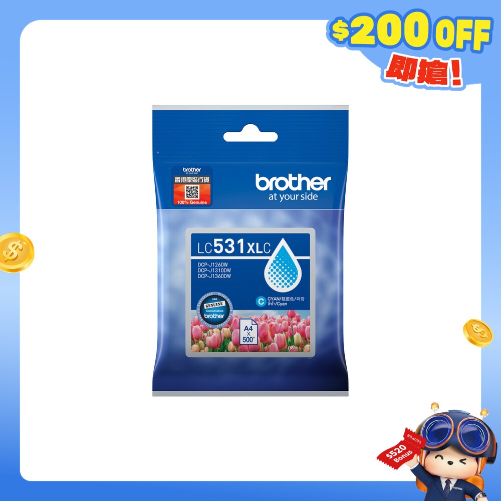 高容量蓝色墨盒打印量约500页 (根据 Brother採用ISO/IEC 24712测试计算)