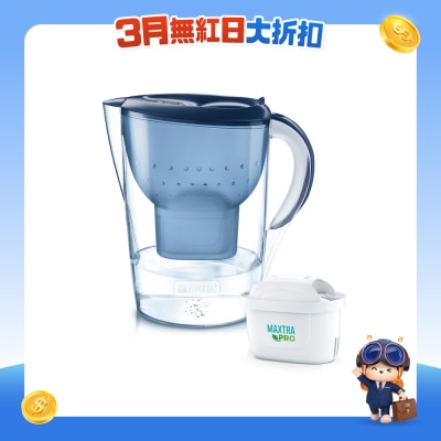 BRITA Marella 滤水壶外观时尚,具智能提醒更换滤芯功能,搭配全新MAXTRA PRO Pure Performance 纯净全效全效滤芯提升过滤性能,去除重金属及杂质。