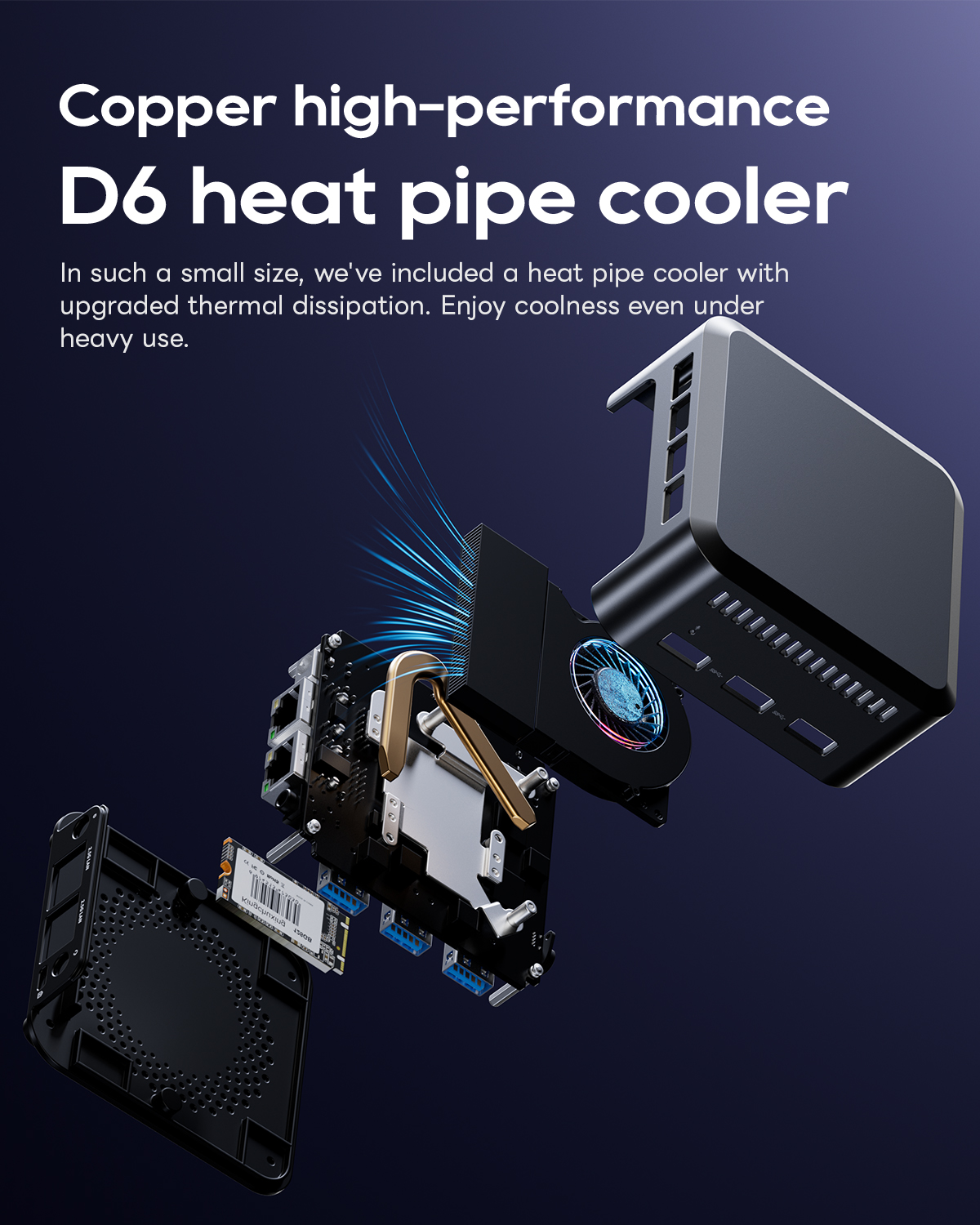 Intel Twin Lake N150 4C/4T/Onboard DDR5 Pre-installed : 12GB/M.2 2242 SATA/NVME Pre-installed : 512GB SSD/DP x1, HDMI x 1, USB Type-C x 1 /GbLan, WiFi-5 & Bluetooth 5.0/USB 3.2 *3/Windows 11 Pro