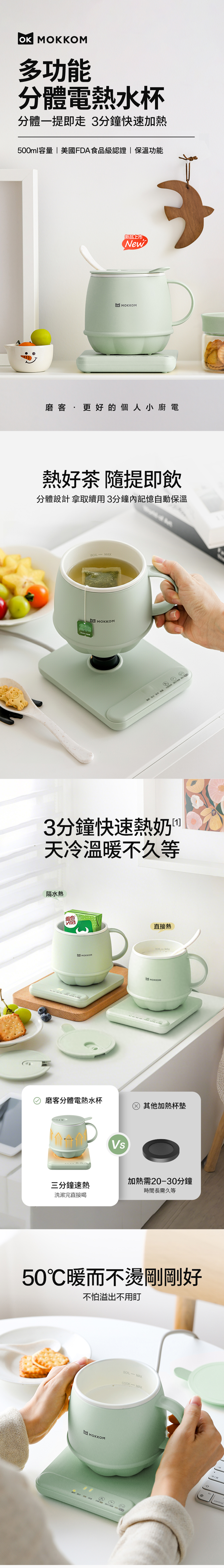 MK-383A 分体不沾易洁智能定时恆温多功能万用电热水杯