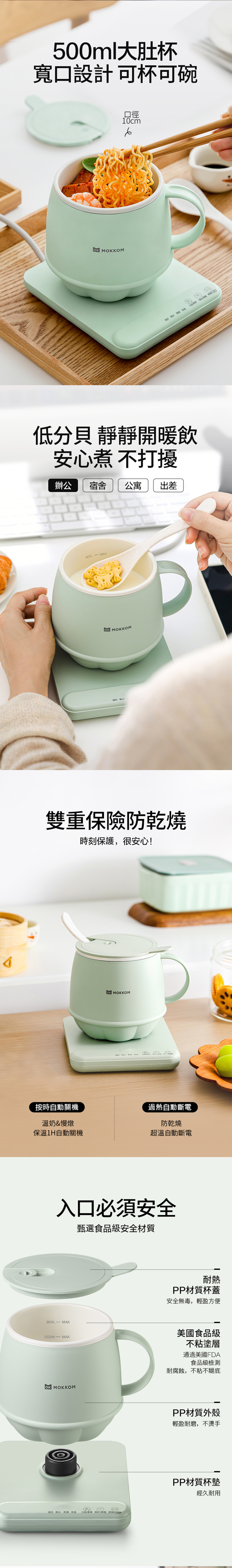 1. 温奶保温一键成;2. 小巧分体易携;3. 快速烧水自动保;4. 迷你慢炖随心调;5. 三档调温长保温;6. 自动续烧不间断;7. 安全防护够贴心:温感防烫+异常报警+保温底垫降温 ;8. 一键预约定时启;9. 静音不扰人 ;10. 易清洁不沾胆;11. CE认证用得安;