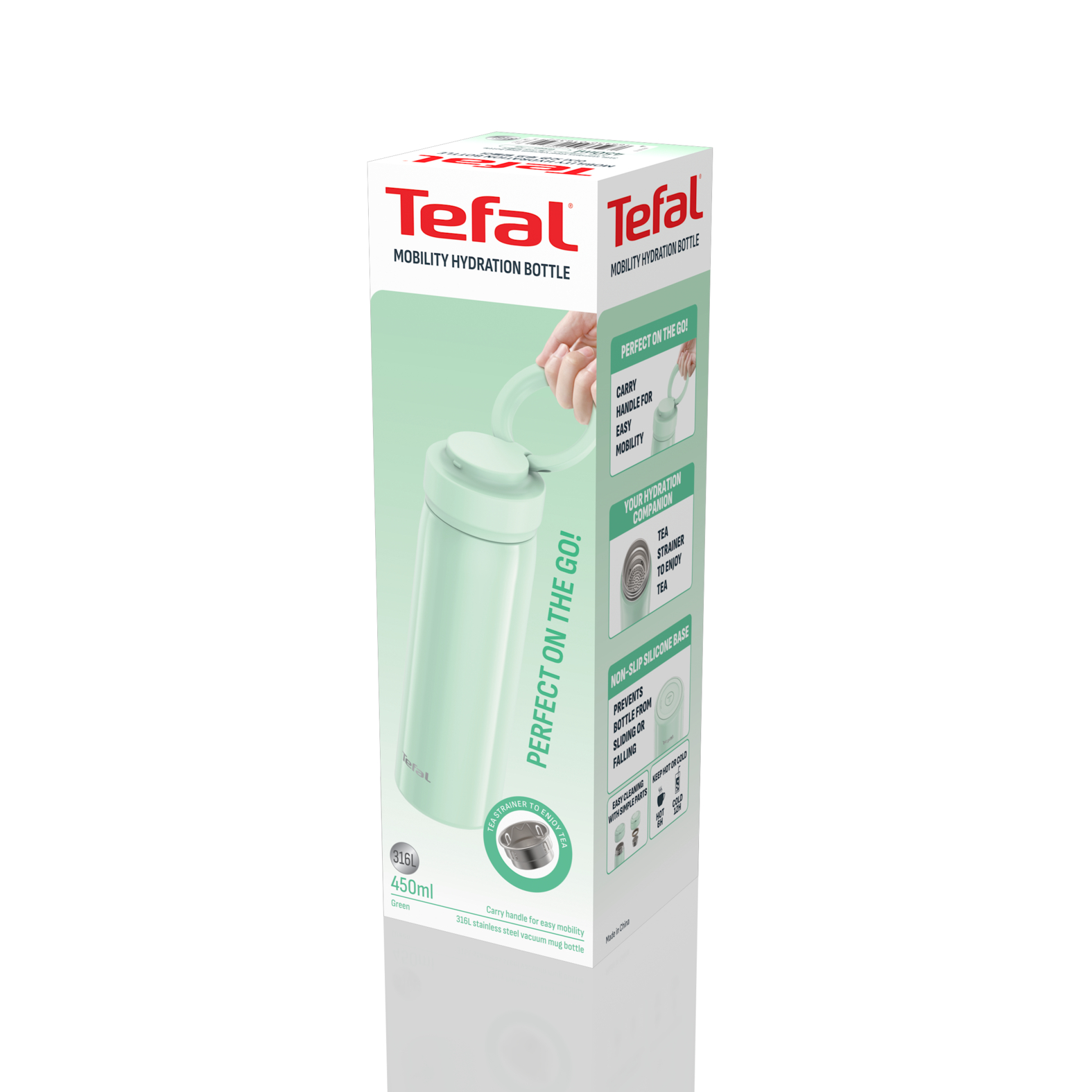 特福 Mobility 绿色450毫升保温杯, 螺旋盖设计确保全天候卫生,100%防漏且易清洗的设计,让您完全无后顾之忧。这款高品质随行杯,既能保温也能保冷,让您随时享受冷热饮品的乐趣