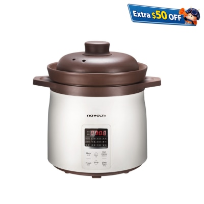 紫砂养生万用电煲 (5公升) 700W 天然紫砂: 不含易洁涂层、金属物、化学物料等,通过美国FDA食品认证、紫砂含量符合欧盟标準) 远红外线: 帮助分解油脂、熟化均匀、pH值提高 透气不透水: 更保鲜,耐储存 温火烹调,不易蒸发,备时间制: 易用、易控、保持原汁原味 LED板面设计: 多项烹调功能 双层锅盖,烹调存热,滋味无穷 分离式插头,移动方便