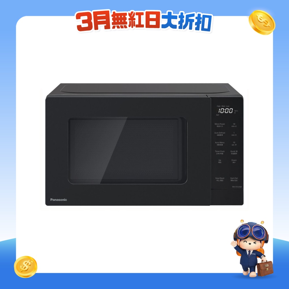 容量:20公升/ 输出功率:800瓦特/ 5段微波火力调较/ 10款自动食谱程式