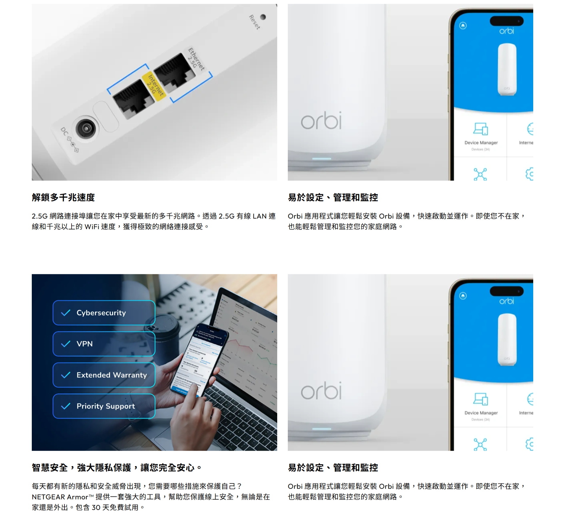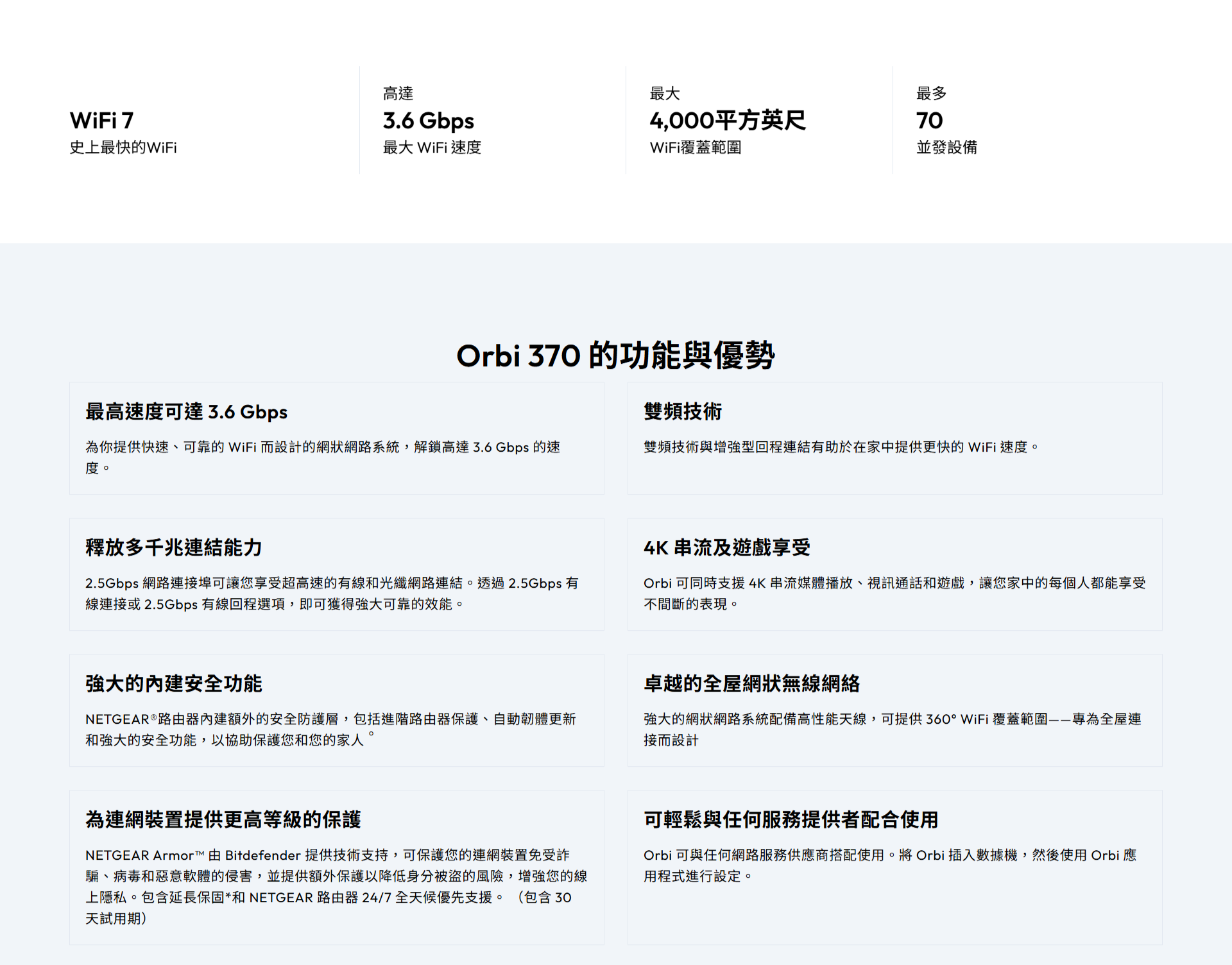 Orbi 370系列为需要在每个房间内同时提供一致高速WiFi的家庭提供无与伦比的性能。