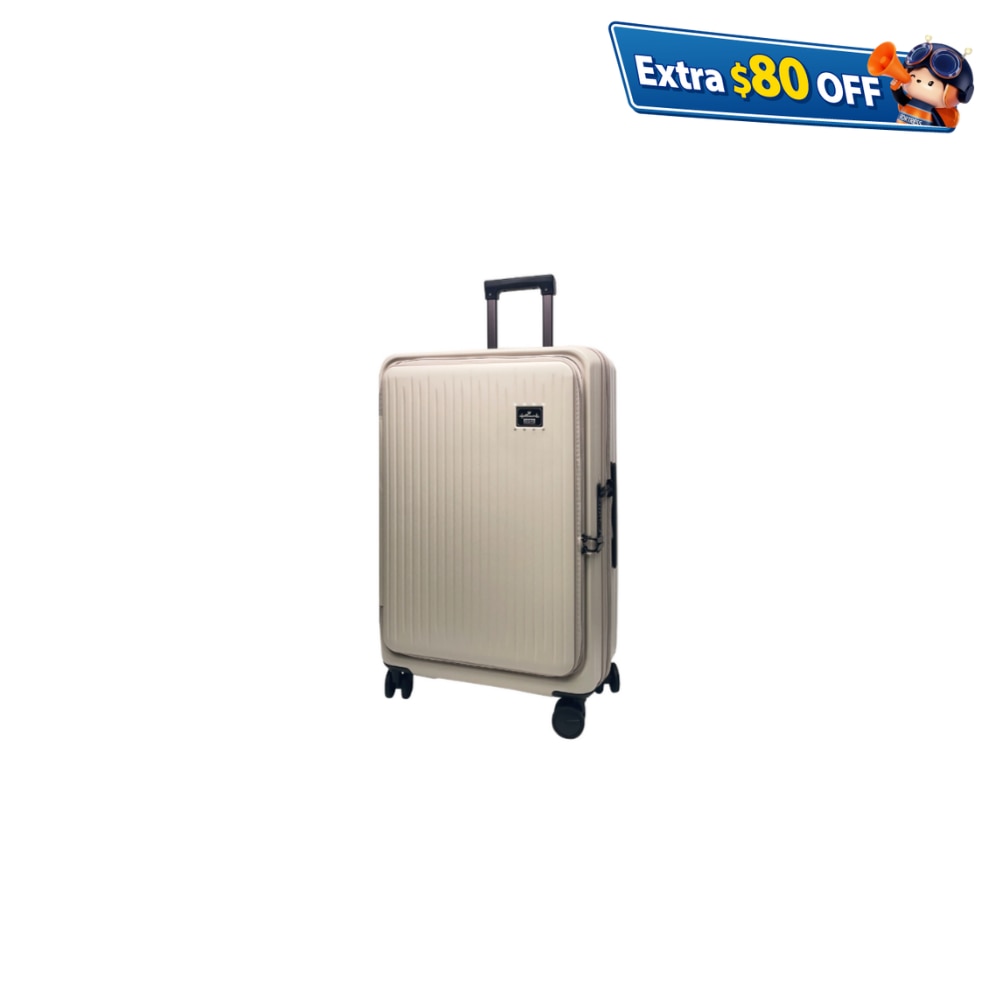 双模式打开(前揭式+中开)。美国海关TSA密码锁。100%PC面料。双层防盗拉链、日本Hinomoto 静音360度旋转辘、扩大容量。