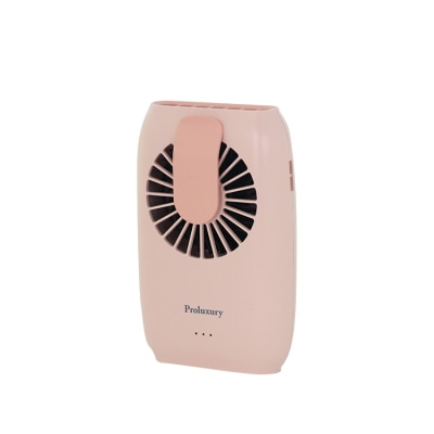 普乐氏 PHF001200G USB 迷你可挂式充电风扇。多种使用方式:挂在颈上、挂腰、载在手腕上、放在桌面上。向上出风设计,可配戴使用。体积小巧,轻鬆装入手袋和背包。具备三档风速和2000mAh 电池容量。材料为ABS,淨重160g。附送配件:挂绳、支架、手环扣和充电线。