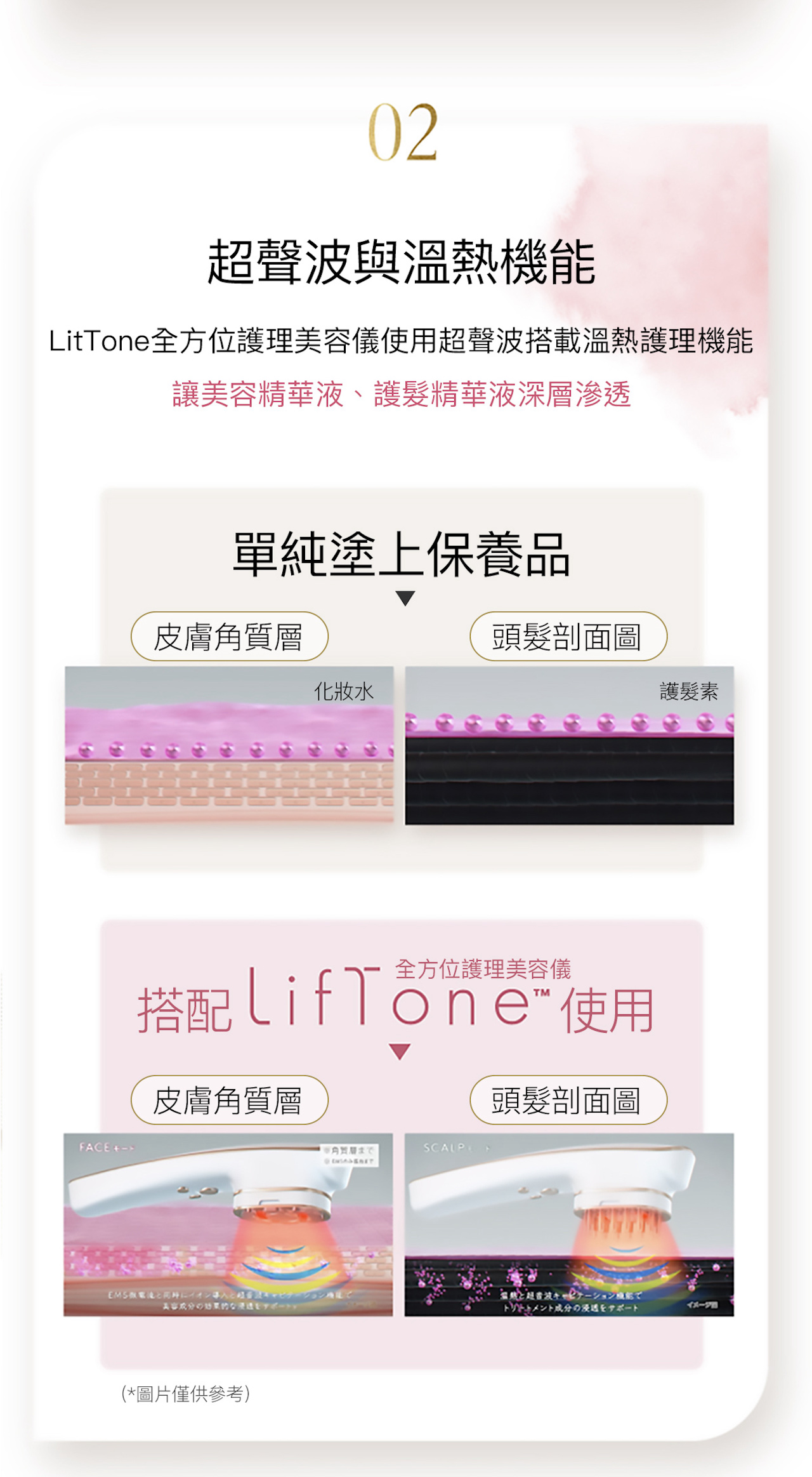 日本品牌LifTone一机两用,双护理头随时更换,脸部头发全面护理。 LifTone拥有独特EMS微电流及脉冲波技术,能够直接刺激头皮与脸部肌肉,就算日常甚少使用的肌肉部分都可以进行提拉。