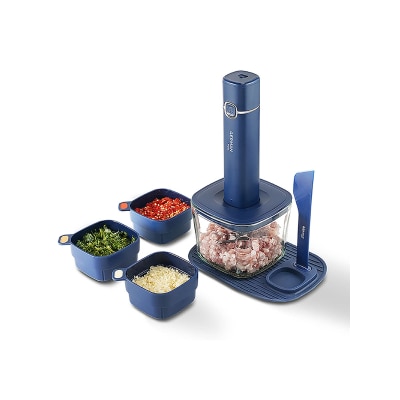 乾、湿、软、硬食材,一键瞬间搅拌细緻,炮製酱料、馅料、辅食、果酱、调味料,充电设计无线使用,满电可用约 50 分鐘,附绞肉杯及 3 个配料杯,分类搅拌不混味,一体式套叠收纳,整齐、易用、悭位,食品级不鏽钢刀片,容器不含 BPA,易拆易装设计方便清洗,洗碗机适用
