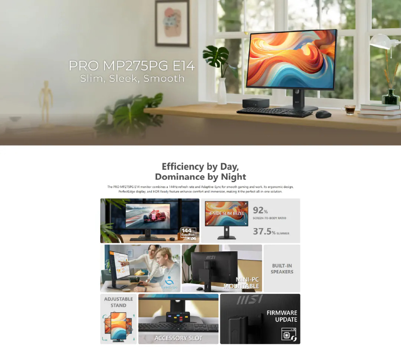 MSI 微星 PRO MP275PG E14 27" FHD 144Hz 商务文书 显示屏