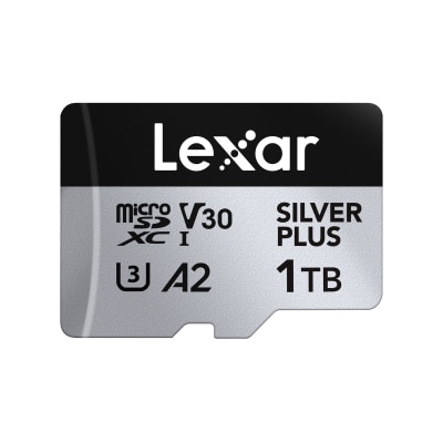 Lexar Professional SILVER PLUS microSDXC™ UHS-I 卡提供 205MB/s 的最大读取速度和 150MB/s 的最大写入速度¹,帮助您拍摄更好的照片和视频,并加快您的工作流程。