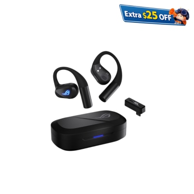 支援双模连线:Bluetooth® 与超低延迟 ROG SpeedNova 2.4 GHz,搭配 USB‑C 单向直通充电、14.2 mm 类鑽碳振膜单体 (Diamond‑Like Carbon Drivers)、开放式耳挂设计、可拆式颈带,以及 四麦克风 AI 降噪技术 (Quad‑Mic with AI Noise Cancellation)。