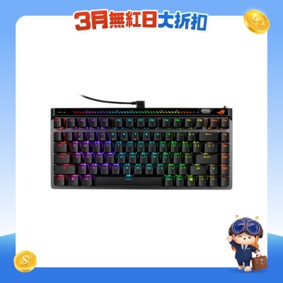Falchion Ace 75 HE,搭载 可热插拔 ROG HFX 磁轴、霍尔感测器、快速触发 (Rapid Trigger)、灵敏度调节滚轮、触控面板、8000 Hz 轮询率、六层消音结构、可调式键盘脚架角度,以及 耐用的双色成型 PBT 键帽。