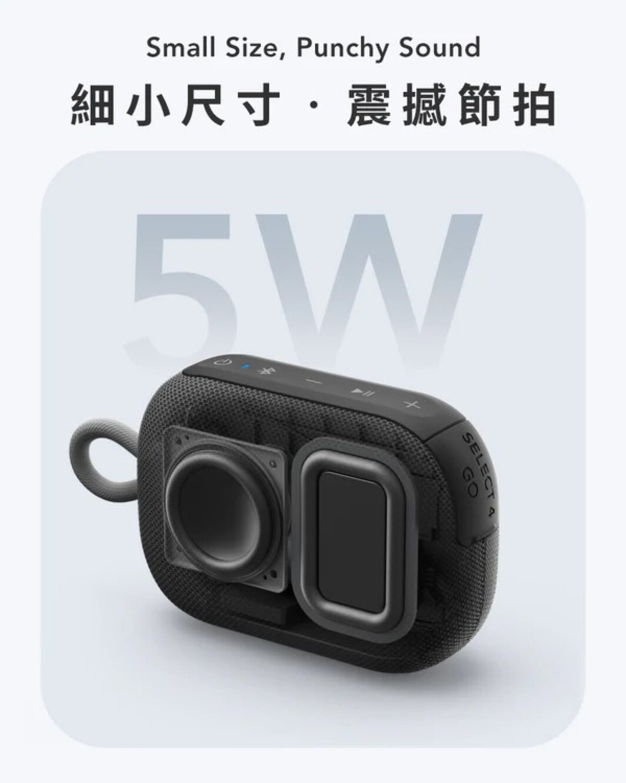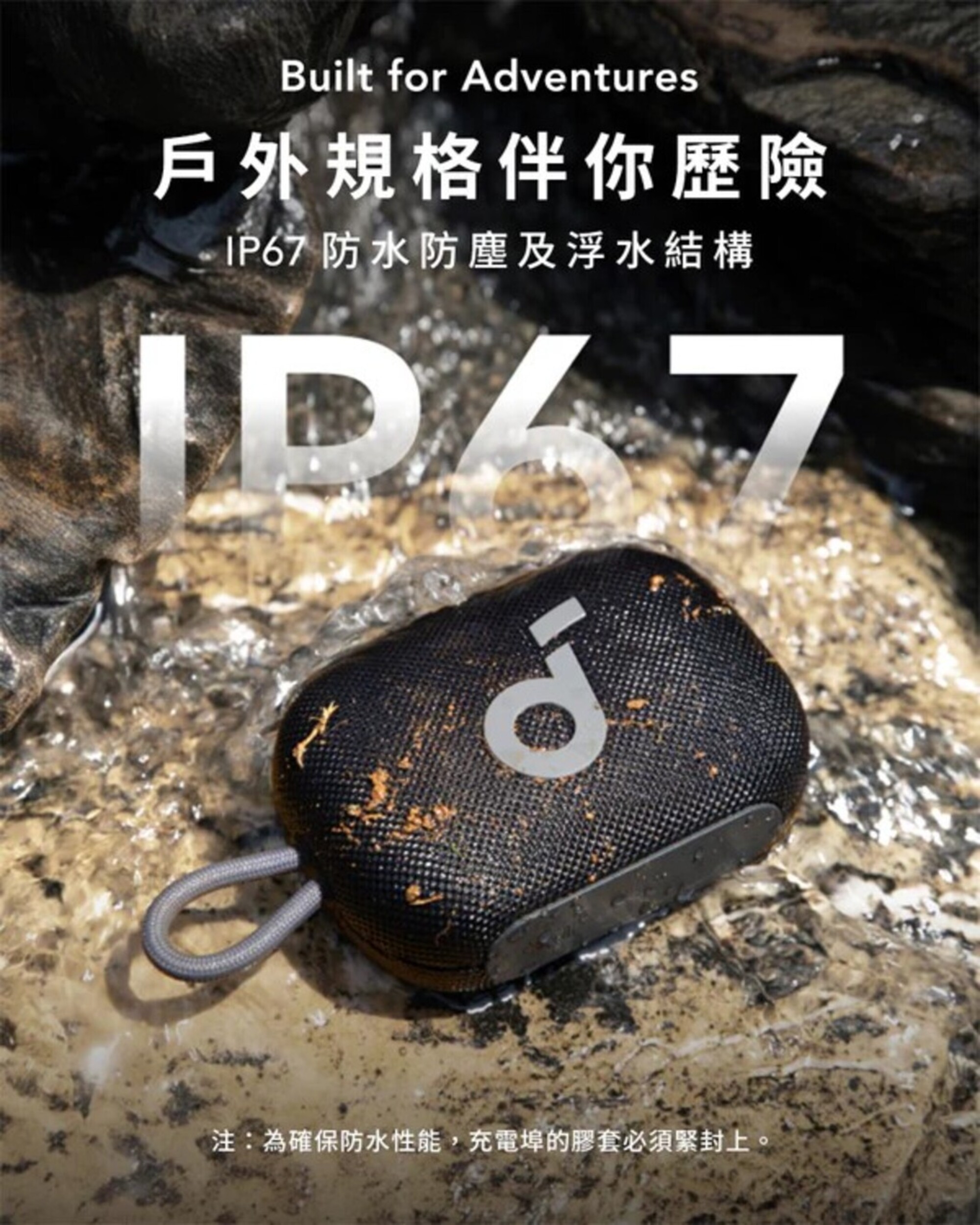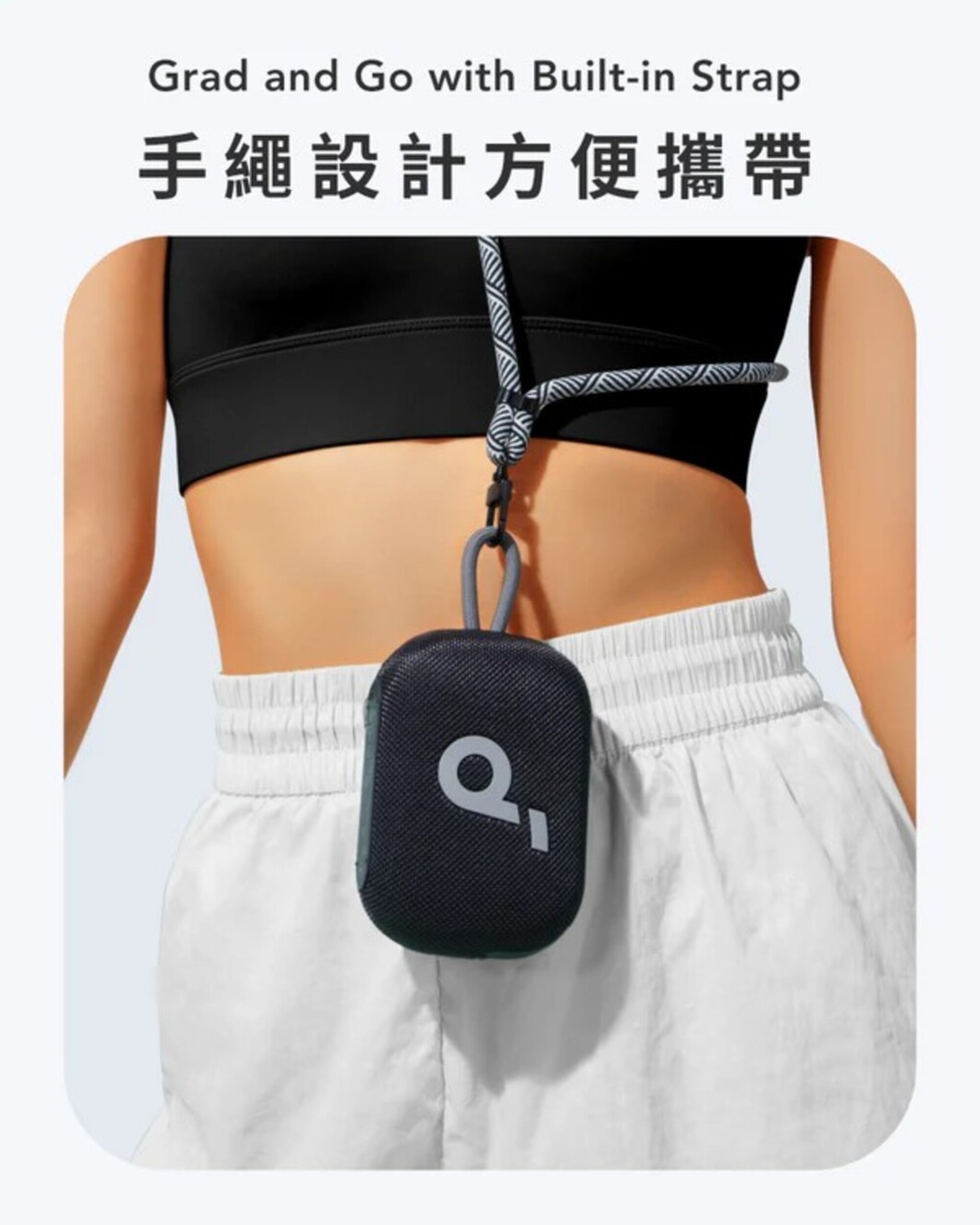 细小尺寸响出5W强劲节拍,IP67防水防尘性能及浮水结构,轻巧机身及手绳设计方便携带,透过真无线立体声配对连接两部,实现更佳音响效果,最长20小时音乐播放时间。