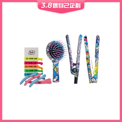 与巴黎艺术家及设计师 Ylan Anoufa 合作打造的限量版图案设计STRAIGHTAWAY 无线旅⾏造型套装包括:无线造型器 ,迷你造型器,迷你镜梳,发夹套装,发带套装