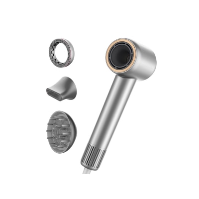 角鲨烷精华环, 平滑喷嘴及扩散喷嘴, 动力: 110,000 转无刷马达, 温度控制技术, 8 亿负离子护发, 创新设计与体验, 宁静