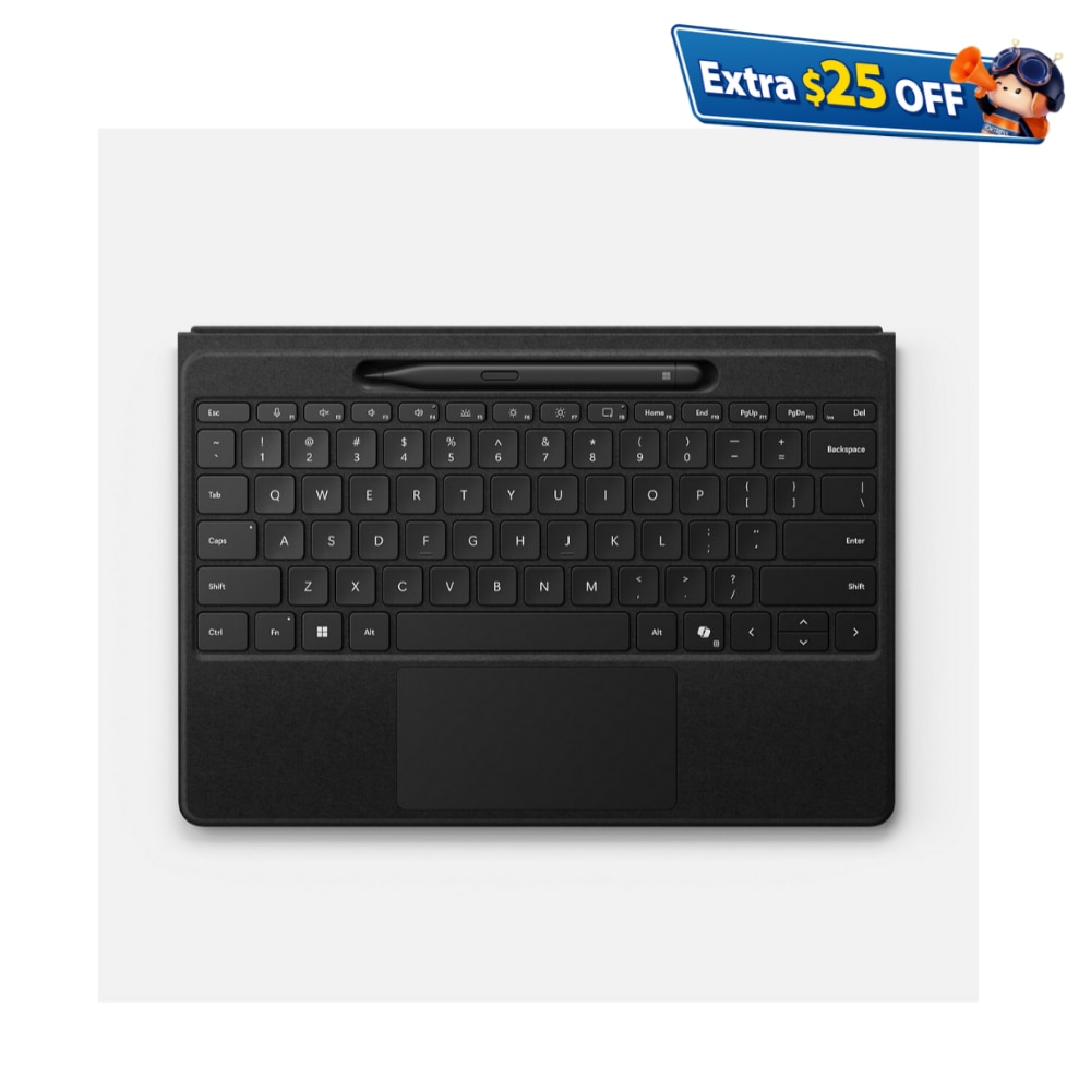 全新 Surface Pro Flex 键盘及超薄手写笔,市面上最灵活的二合一键盘。超薄手写笔可储存在内置笔槽并充电,键盘可连接您的 Surface Pro 打造终极笔电体验,亦可独立使用。为您带来无可媲美的灵活性。全新 Copilot 按键为您带来 AI 的强大功能。此产品只适用于搭载 Windows 11 系统的 Surface Pro 第11版、Surface Pro 9 和 Surface Pro 8。