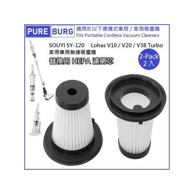 2入包装-适用于 Souyi SY-120 Lohas V10 V20 V38 Turbo便携车用无线吸尘机替换用HEPA空气滤网滤心