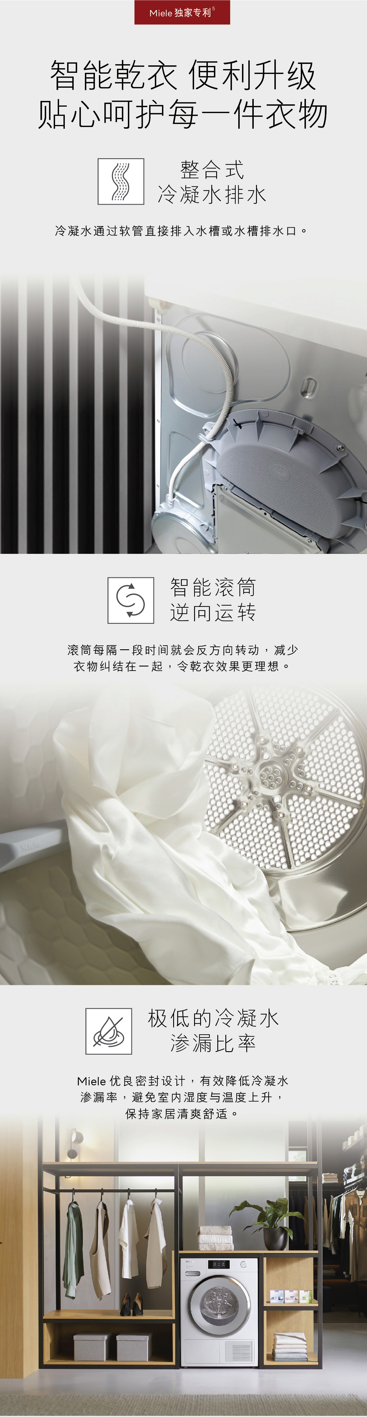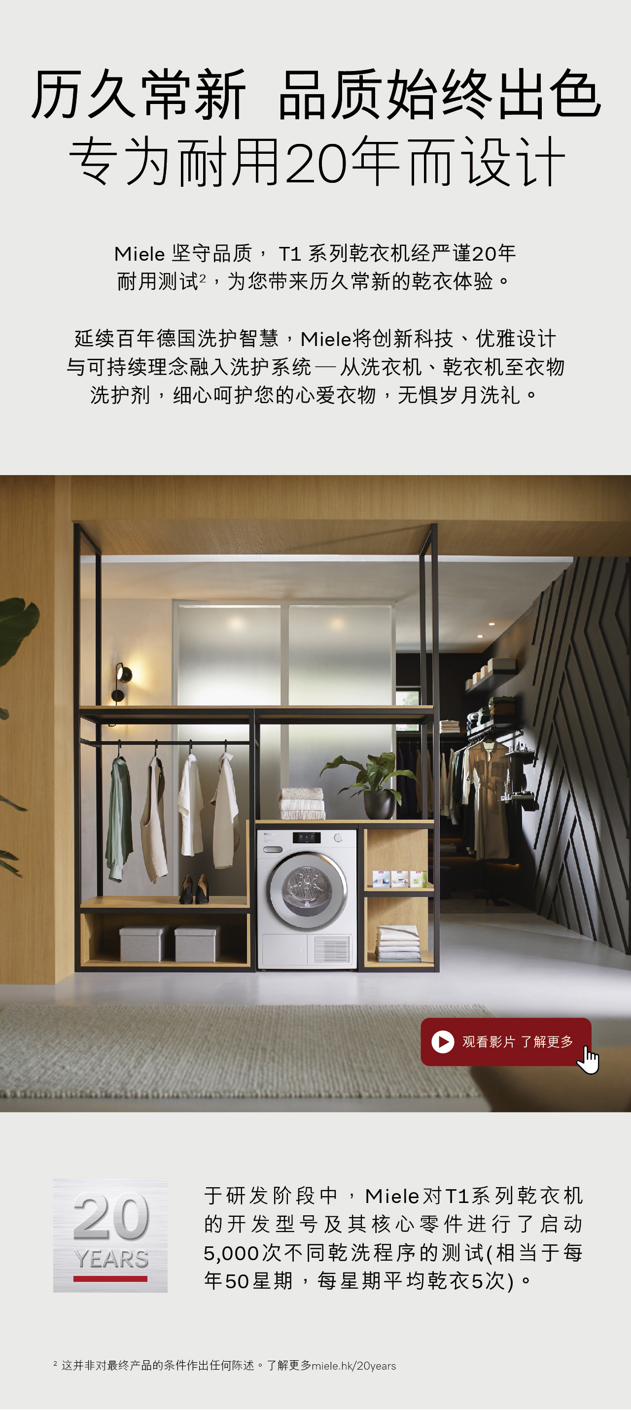 Miele新一代干衣机,为「干衣」订下新标准。采用创新科技,让衣物干爽程度恰到好处、散发清新气息,并保持柔顺松软。