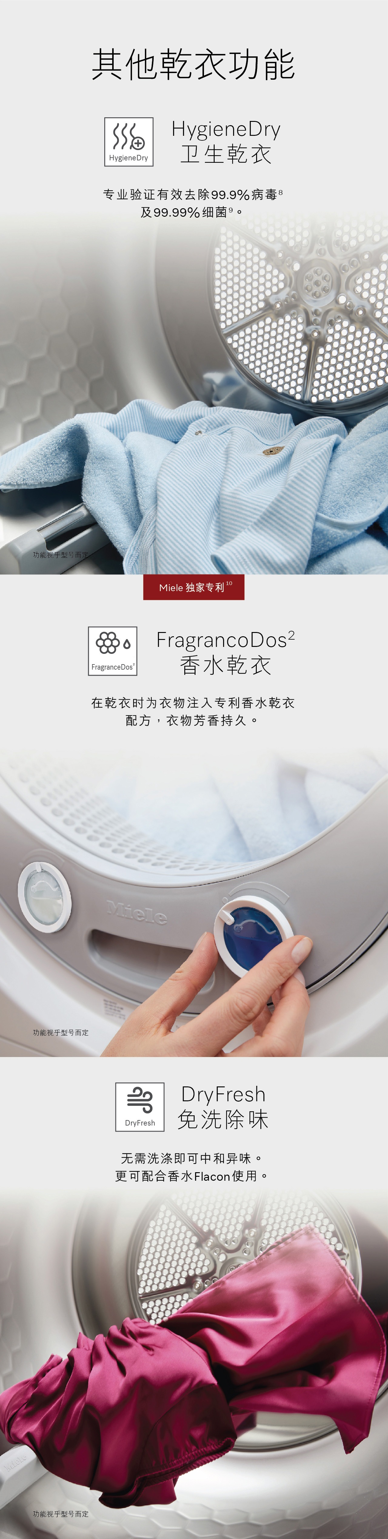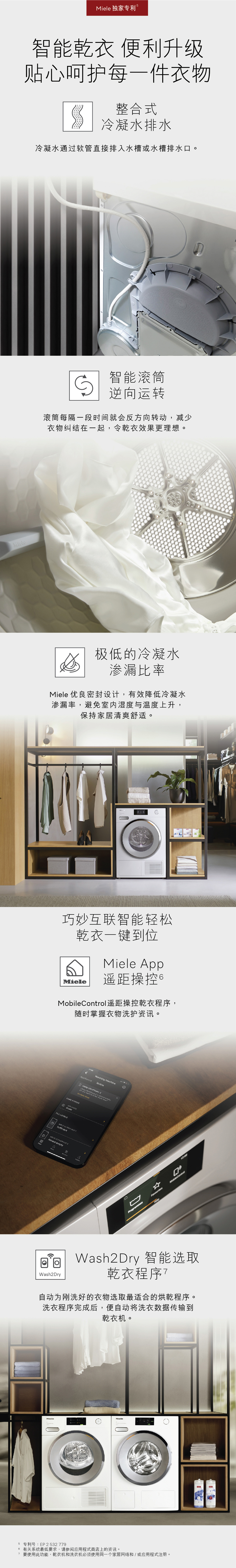 Miele新一代乾衣机,为「乾衣」订下新标準。採用创新科技,让衣物乾爽程度恰到好处、散发清新气息,并保持柔顺鬆软。