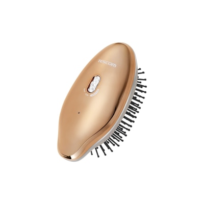 含山茶花油顺滑和有光泽 / 双重保湿负离子 / 声波振动按摩头皮 / 4分鐘后自动断电设计 / 轻便,易于携带