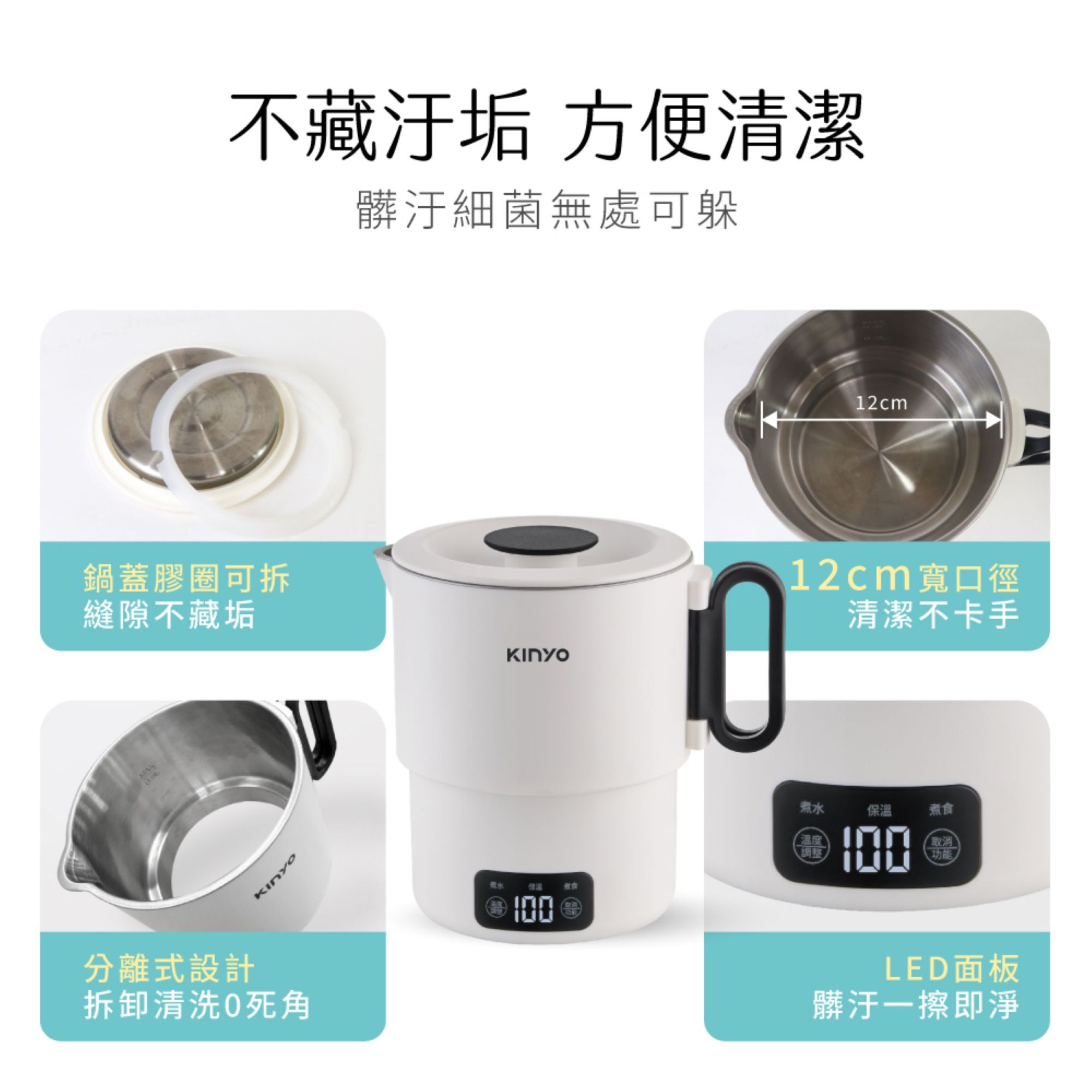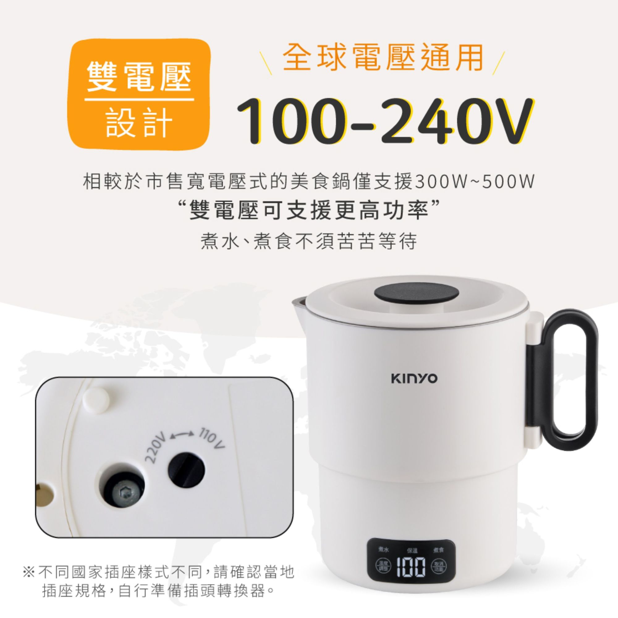 双电压110V-220V快速切换,出国简单享受美食/由40°C至100°C多段温控调整/0.9L精巧容量,个人独享、双人分享皆适用/304不鏽钢材质,优异传导、耐久用/12.5CM大口径/12CM深度烹煮、清洗便利顺手/叠放设计,收纳体积超迷你,外出携带不佔位/可折叠手柄 舒适好握,收纳不佔空间/锅底可拆式食物碟,一锅到底烹煮完成立即食用/锅缘倒水口,便利倒水、倒汤,节省时间又方便