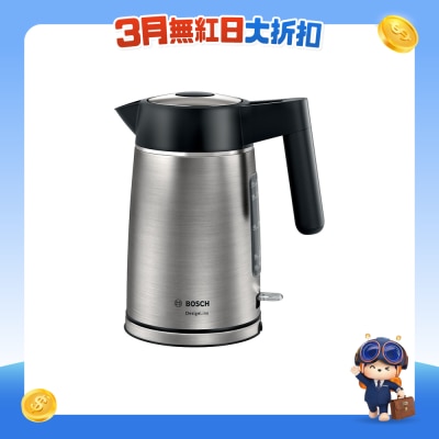 Bosch TWK5P480GB 1.7公升3000W电热水壶。不鏽钢内胆底,隐藏式加热部件。三重安全保护功能:自动关机、过热和防乾烧保护、离开底座时自动关机。附水垢过滤器。