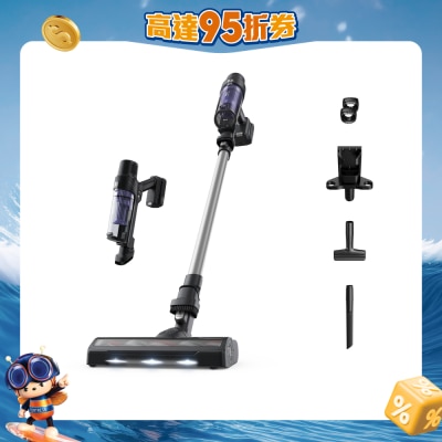 高速吸头备有前置LED灯,可在光线不足的环境下工作,手提模式仅重1.2KG,可连续使用45分鐘(节能手提模式),2段自动吸力调节,强效吸力按钮,可替换式电池设计,集尘量0.6升