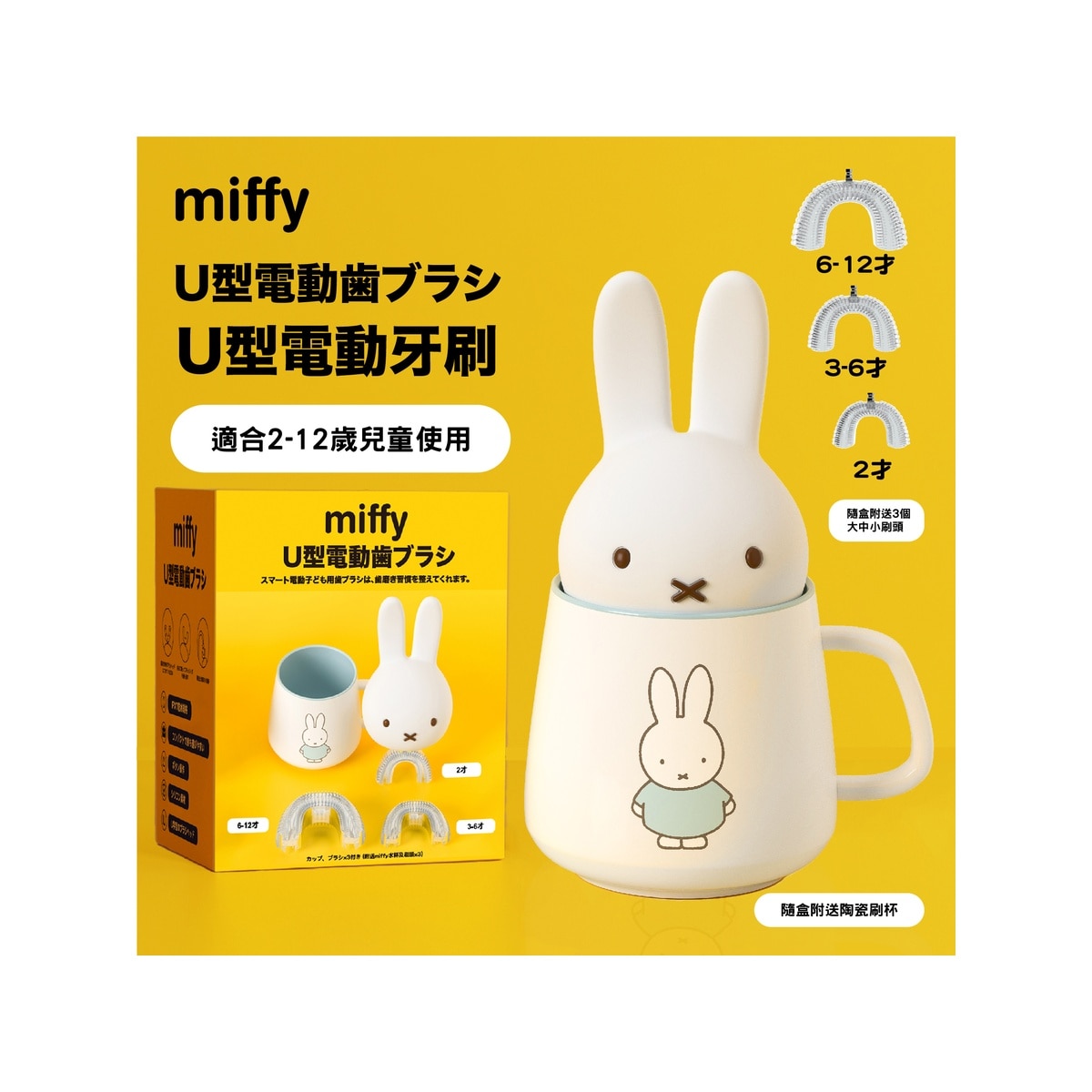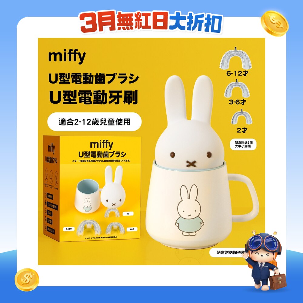 U型电动牙刷 (送miffy 粉红色陶瓷刷杯) 连三个刷头