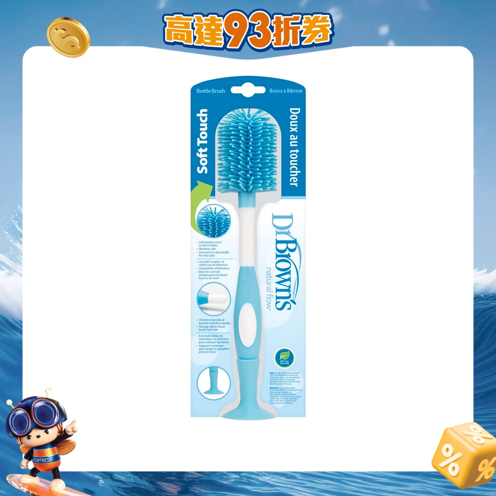 耐熱軟膠刷頭,有效徹底清潔奶樽,防止括花,防滑流線形手柄,清潔奶咀專用的凹凸紋柄端,特設吸盤底座,可掛起或吸附於洗碗槽旁邊,方便晾乾及收藏,清潔衛生,可置於洗碗碟機頂層清洗,可用消毒器進行消毒,不含雙酚A