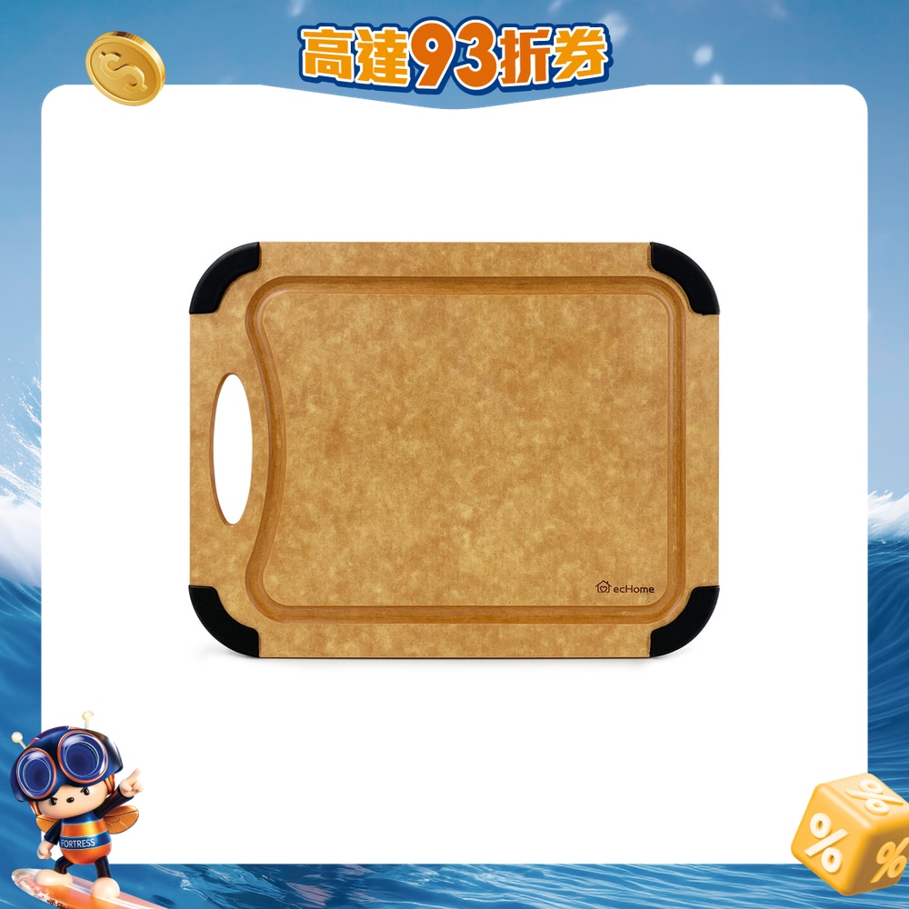 高密度材質, 不易變色, 不易吸水, 不易吸味, 不易發霉/ 人工培植樹木製造/ 可入洗碗機/ 抗高溫/ 不傷刀鋒/ 矽膠圓角, 防滑防移位/ 坑紋設計助排走食物流出汁液