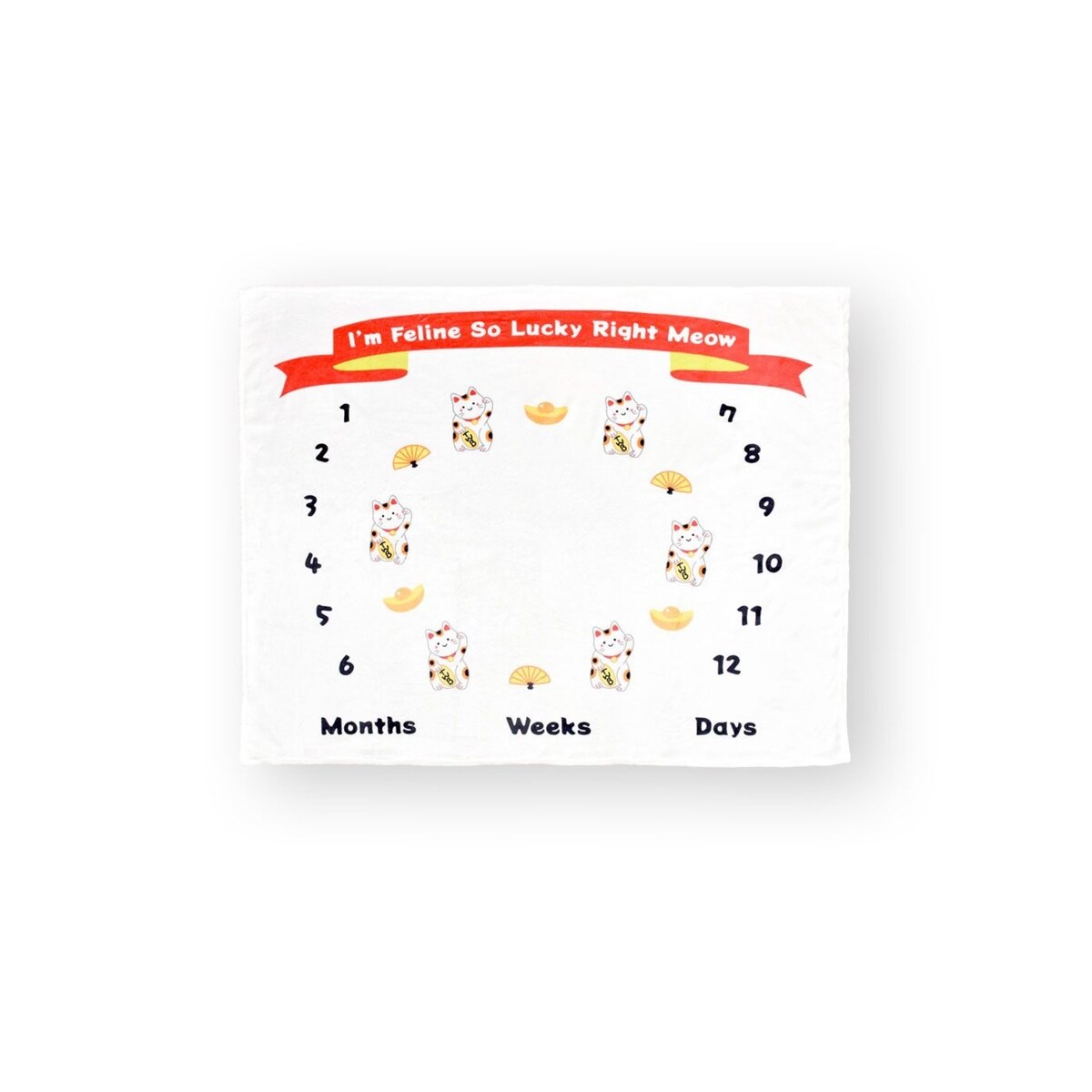 Maneki Neko(“招財貓”)是一種常見的日本小雕像,人們認為它的舉起爪子揮舞著良好的氛圍,會給主人帶來好運。用我們超柔軟的里程碑毯子慶祝您寶寶的第一年和他們所有的第一個里程碑!