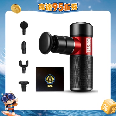 符合人體工學設計蜘蛛俠按摩槍,採用航空級鋁合金材質,堅固耐用, 經典紅色配黑色按摩槍機身,4種按摩轉動速度高達3200RPM,附4 款專業SPA級按摩頭,滿足各種疲勞所需 。