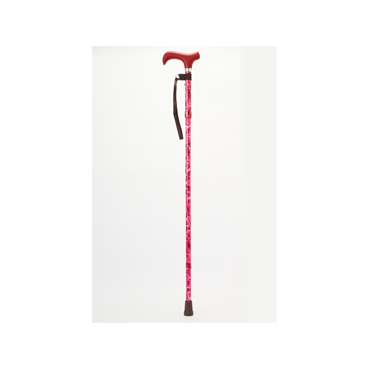 Merry Sticks Premium「心意」款以鮮明玫瑰花圖案與霧面紅色握把設計,傳遞溫柔與關懷的氛圍,極具禮物感與生活品味。五段式折疊結構,收納後僅手掌大小,方便放入袋中。鋁合金杖身僅重約 275 克,輕盈穩固,承重達 100 公斤。握把為霧面塑材,觸感溫潤,止滑腳墊提供穩定支撐。高度可調約 82–89.5 公分,適合身高約 158–173 公分。附腕帶與收納套,安全又實用。由台灣設計與製造,適合自用或贈禮,處處體現細緻與用心。