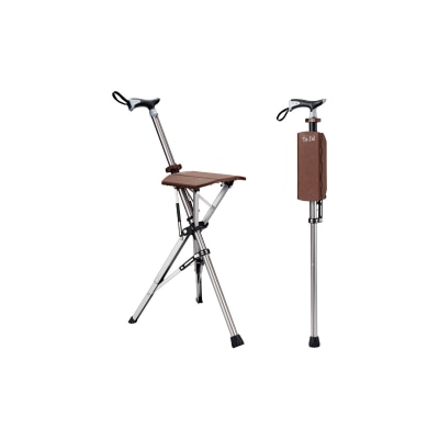 一杖兩用,可作手杖支撐身體,可當座椅坐下休息。協助使用者能更平穩的行走,座椅設計則是用於短時間的休息乘坐。