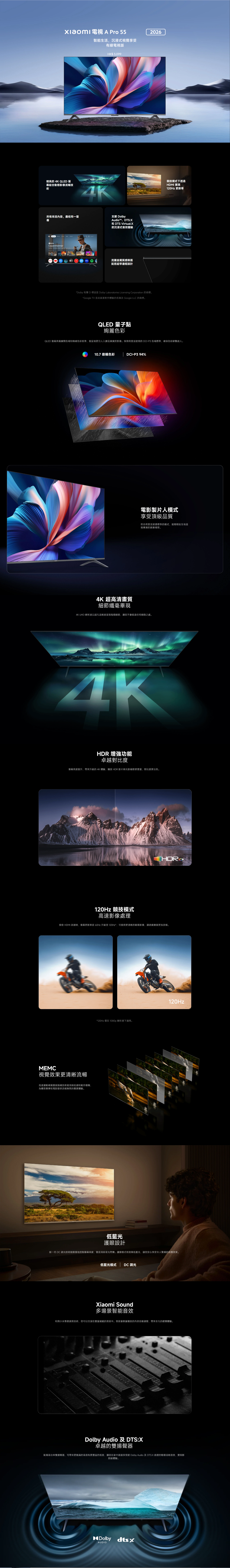 TV with tuner 4K QLED螢幕,畫質明亮、細膩、流暢 DLG 120Hz高刷,遊戲利器,暢快體驗 金屬質感,極窄邊框設計 影院級音效,聲臨其境 搭載Google TV,一屏暢覽,獨享天下