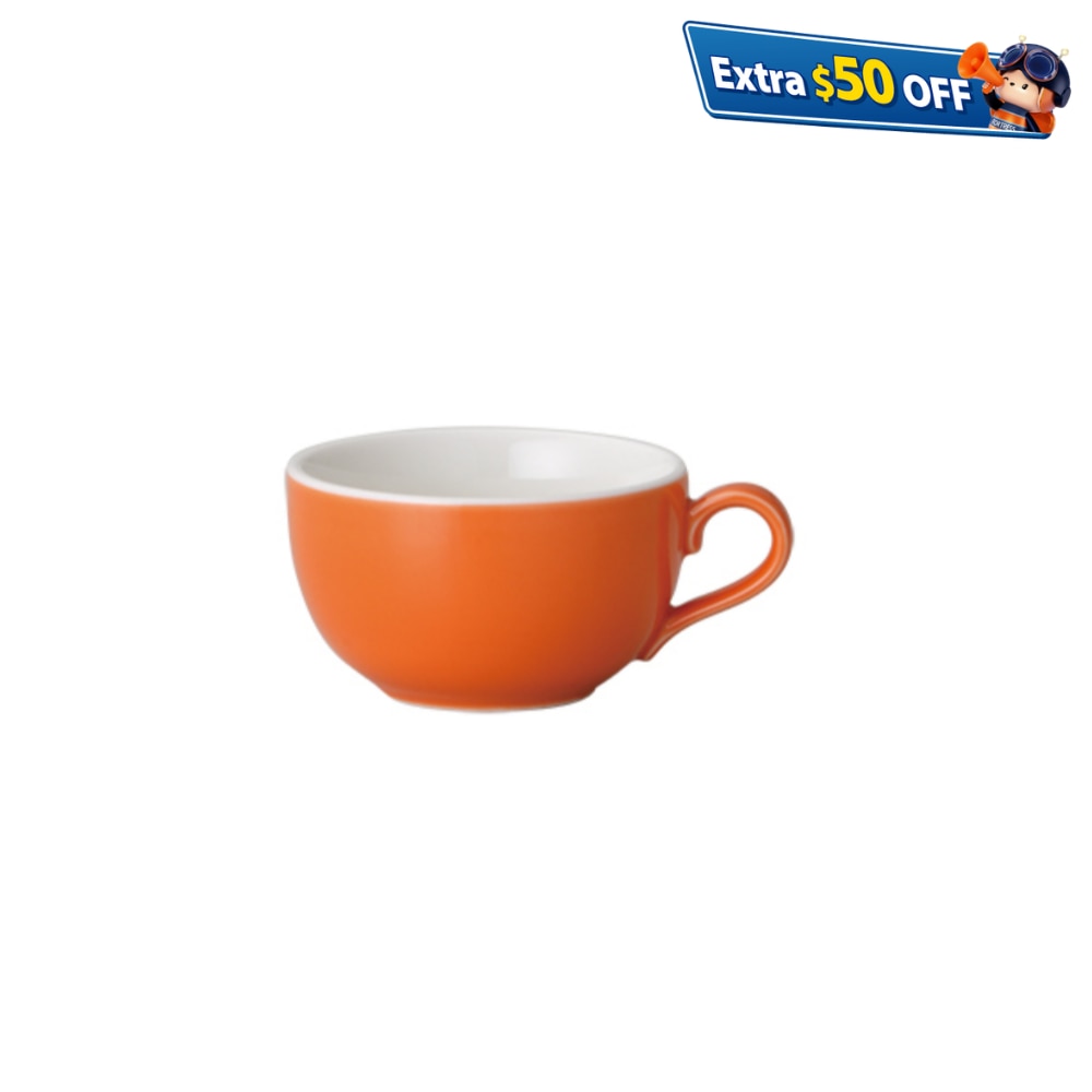 圓型的拿鐵碗在把手上能單手輕易勾起咖啡杯,搭配寬口的杯緣,進而製作出不同花樣的拉花圖樣,並以厚實的杯壁維持咖啡拉花的穩定,讓牛奶/奶泡與咖啡獲得最為完美的融合。