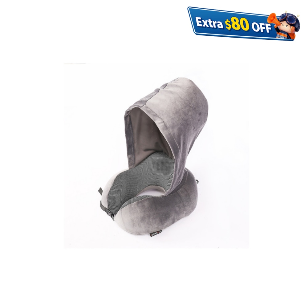 3D記憶海棉連帽頸枕,模擬駝峰設計,前扣能充分支撐並固定頸部與頭部輪廓,有助頭部和頸部放鬆,從而提昇睡眠質素。