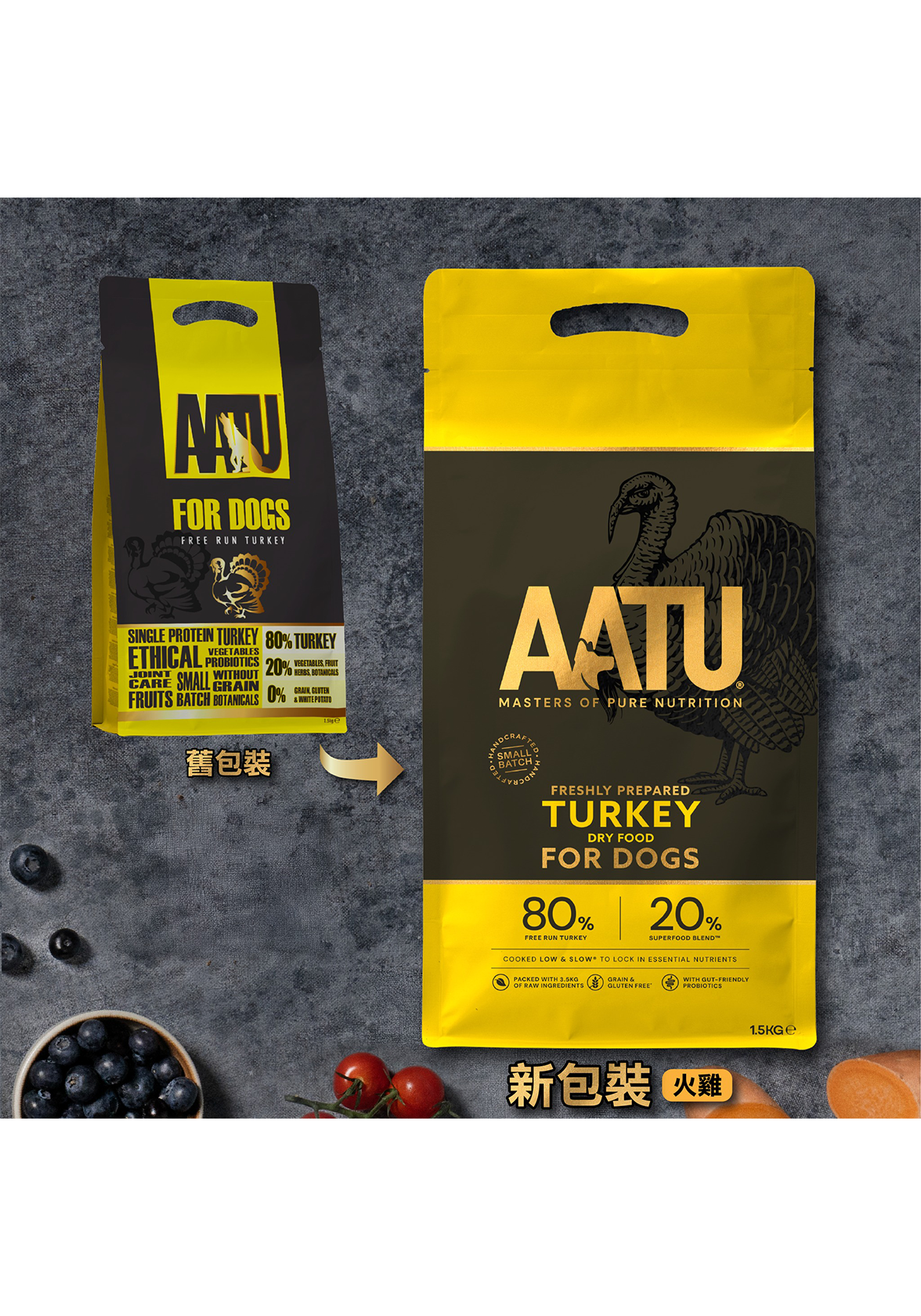 成分 80% 火雞肉 (包括65%新鮮火雞肉、13%脫水火雞肉、2%新鮮火雞湯) 豌豆(8.5%)、蕃薯(3%)、鷹嘴豆(3%)、蘋果(3%)、礦物質、蔬菜汁 、雞油、馬鈴薯蛋白、三文魚油、木薯、水果和草藥混合物(紅莓、 梨子、藍莓、桑椹、紅蘿蔔、番茄、菊苣、番芫茜、薄荷、螺旋藻、海藻 、牛至、鼠尾草、馬鬱蘭、百里香、甘菊、玫瑰果、蕁麻、絲蘭、金盞花 、茴香、葫蘆巴、肉桂,0.04%)、葡萄糖胺178 mg/kg、甲基磺酰甲 烷178 mg/kg、硫酸軟骨素125mg/kg 營養分析 蛋白質34%、脂肪20%、粗纖維3%、無機化合物8.5%、Omega-6 3.25%、Omega-3 0.4%