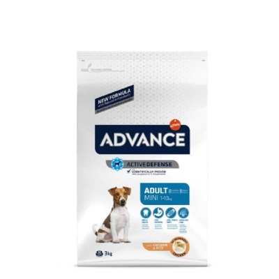Advance Adult Mini 是一種易於消化的優質食品,其配方可滿足小型成年犬的需求。以雞肉為第一原料製成。優質蛋白質水平有助於維持肌肉質量,歐米伽 3 和歐米伽 6 脂肪酸有助於健康皮膚和光澤皮毛。 粗磨顆粒尺寸較小,適合小狗的嘴。 主要成分 在 Advance,我們採用優質原料準備食譜,以確保良好的營養。我們的成人迷你食譜以雞肉作為第一種成分製成,我們將未經加工的雞肉融入食譜中,用自己的汁液烹調肉類。雞肉是蛋白質和維持組織和良好肌肉狀況所需氨基酸的絕佳來源。 成份 雞肉(20%)、脫水家禽蛋白、全穀物(10%)、米(10%)、全玉米、家禽脂肪、脫水豌豆(4%)、玉米粉、脫水豬肉蛋白、玉米蛋白、水解動物蛋白(家禽、豬肉、魚類)、甜菜漿(2%)、豌豆纖維、小麥中粉、菊苣菊粉(0.8%)、礦物質、豬肉血漿蛋白(免疫球蛋白的天然來源)(0.4%)。 營養分析 維生素A27000國際單位 維生素D31200國際單位 維生素E500毫克 維生素C70毫克 一水合硫酸鐵(II)260毫克(Fe:86毫克) 碘化鉀1.9毫克(I:1.4毫克) 五水硫酸銅(II)33毫克(銅:8.8毫克) 一水硫酸錳123毫克(Mn:40毫克) 一水硫酸鋅406毫克(鋅:148毫克) 亞硒酸鈉0.2毫克(Se:0.1毫克) 動物技術添加劑:腸道菌叢穩定劑:貝萊斯芽孢桿菌 DSM 155441x109 cfu。 含抗氧化劑。 分析成分 27% 粗蛋白 19% 粗脂肪 2.2%粗纖維 6.5% 粗灰分 0.4% 歐米伽 3 3.6% 歐米伽 6