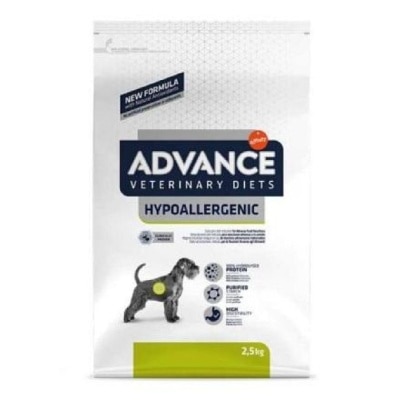 ADVANCE處方狗糧 – 低過敏源專用 2.5KG 100%水解蛋白 精製澱粉 高消化率 適合對食物過敏的狗隻長期食用 可用於測試食物過敏源 ADVANCE處方狗糧 – 低過敏源專用是幼犬和成年犬的完整飲食產品,能減少犬隻對成分和營養素的不耐受性及過敏問題。它包含蛋白質的單一來源和碳水化合物的單一來源。 這款低過敏源專用的處方狗糧,有助於狗隻改善在消化過程中引起的食物過敏和不耐症,其配方是將極低分子量的水解大豆蛋白作為唯一的蛋白質來源,並將純淨的澱粉作為唯一的碳水化合物來源。此外,其低過敏性塗層,味道更可口。 ADVANCE處方狗糧 – 低過敏源專用建議給對食物有不良反應的狗隻食用。 成份 純植物澱粉,水解植物蛋白,動物脂肪(用天然生育酚混合穩定),低過敏性香料,纖維素,椰子油3%,磷酸一鈣,碳酸鈣,純發酵纖維,氯化鉀,芥花油,鹽,氧化鎂。蛋白質來源:水解大豆蛋白,碳水化合物來源:純化的玉米澱粉