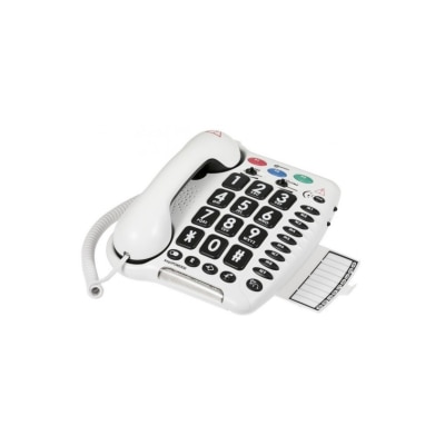 擴大電話聽筒裡對方的聲音達40分貝,超大鈴聲,高達80分貝,帶閃燈。音訊調節加/減10分貝,可調校高低音。12個電話號碼直撥鍵,適合儲存長途/國內號碼,特大按鍵,免提對講。一年原廠保養。