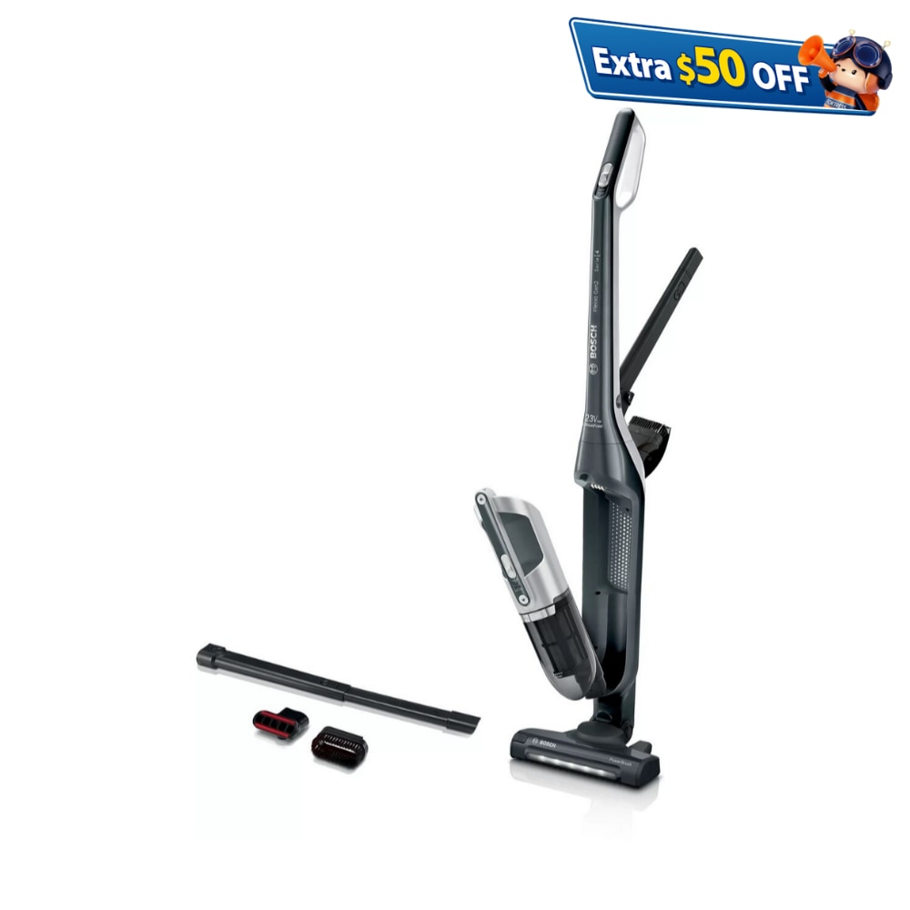 Bosch 21.6V (23V max) 2合1直立式吸塵機. 2in1功能:手提式和直立式吸塵機 配件一體收納 充電 5小時,可使用高達約50分鐘 (Level1)