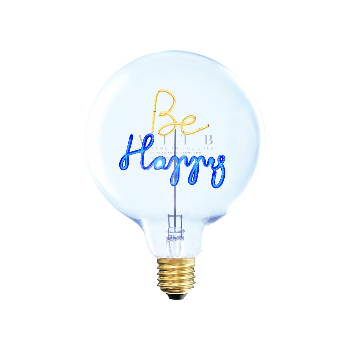 MESSAGE IN THE BULB - Be Happy - 透明玻璃/琥珀色和藍色