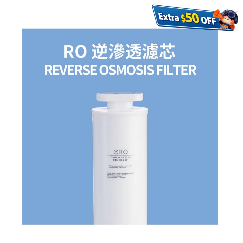 RO逆滲透濾芯可過濾病毒細菌、重金屬、微生物、水垢等微小雜質,高效逆滲透膜0.0001微米。濾芯壽命: 2500 liter