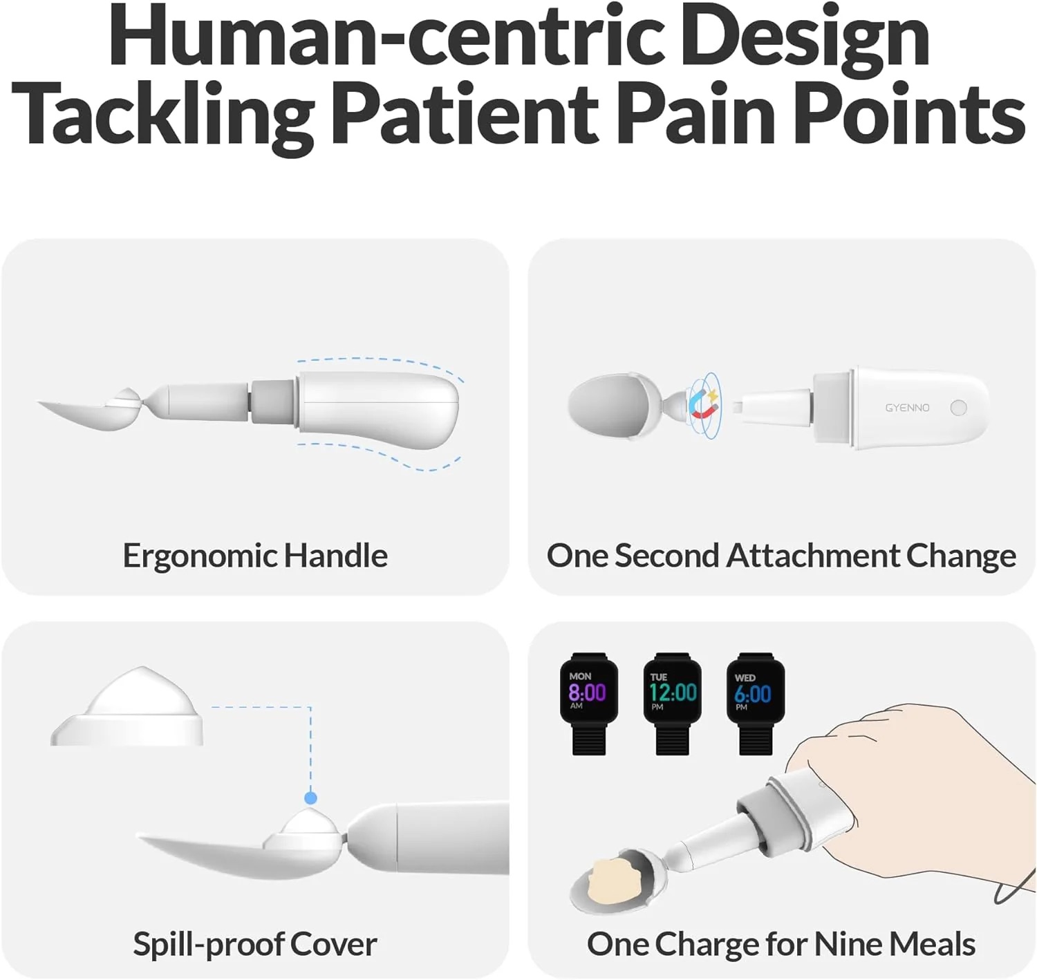 GYENNO Bravo Classic是一款革命性的餐具,旨在幫助手部震顫或帕金森病患者更輕鬆、更獨立地進食。這款湯匙具有內置的感應器,可以檢測並抵消手部震顫,使使用者能夠更穩定地握住湯匙,更輕鬆地進食。