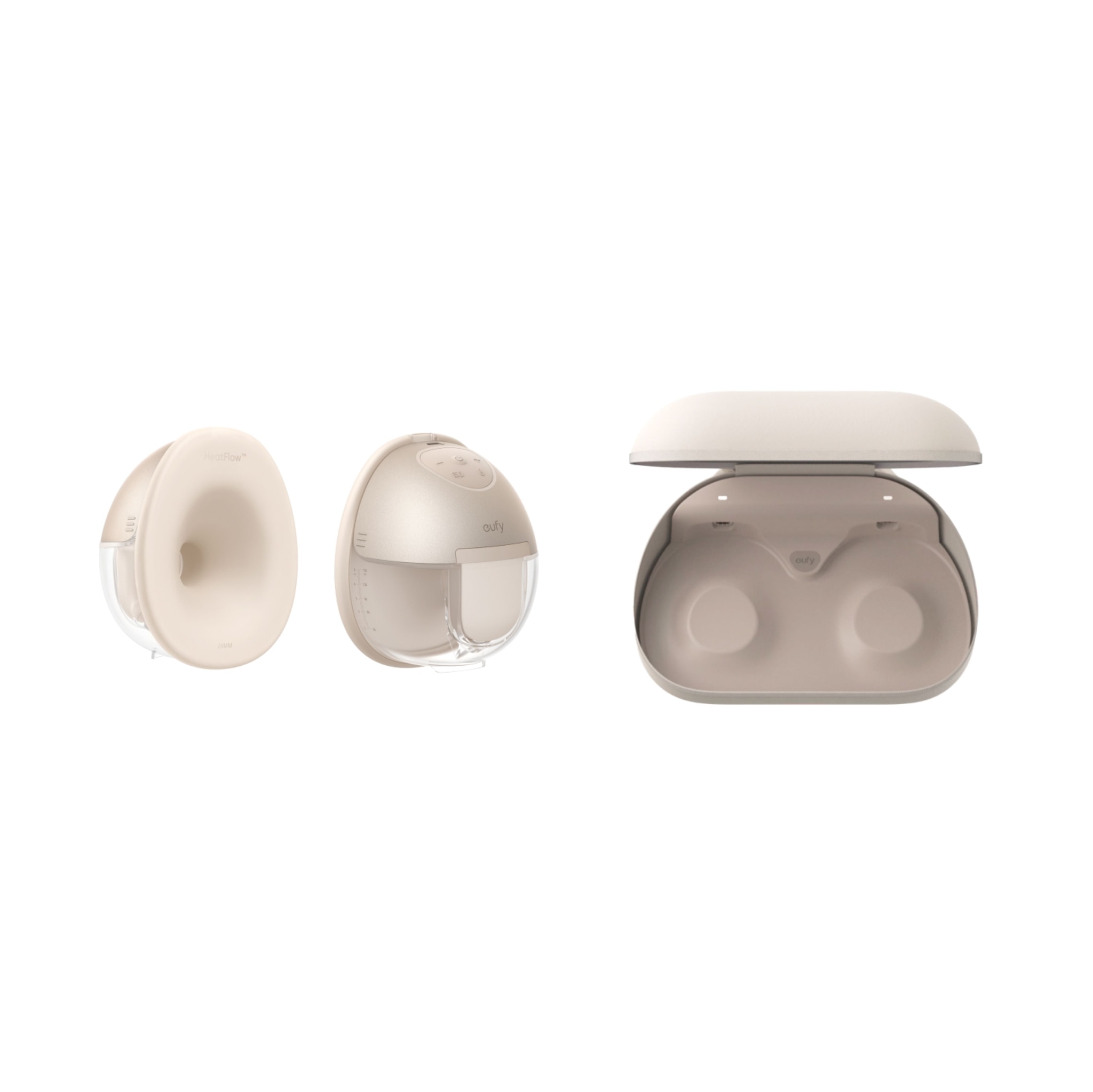 HeatFlow™ 溫熱技術提供 7 個溫度調節 ( 95°F - 105°F / 35°C - 41°C), 改善母乳流動,減少阻塞並增加乳量*, 給你如同水療般溫暖舒適。磁吸充電盒隨時候命, OptiRhythm 調節吸乳節奏, OptiRhythm 調節吸乳節奏,輕鬆清洗, 細小輕巧 安靜使用
