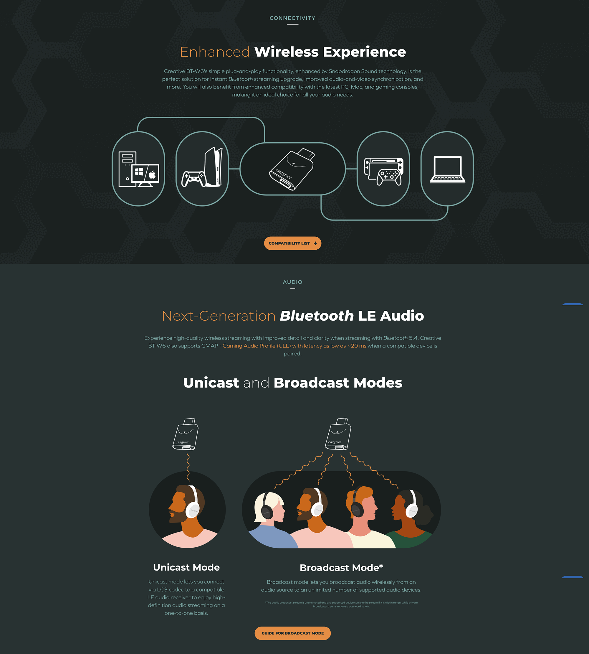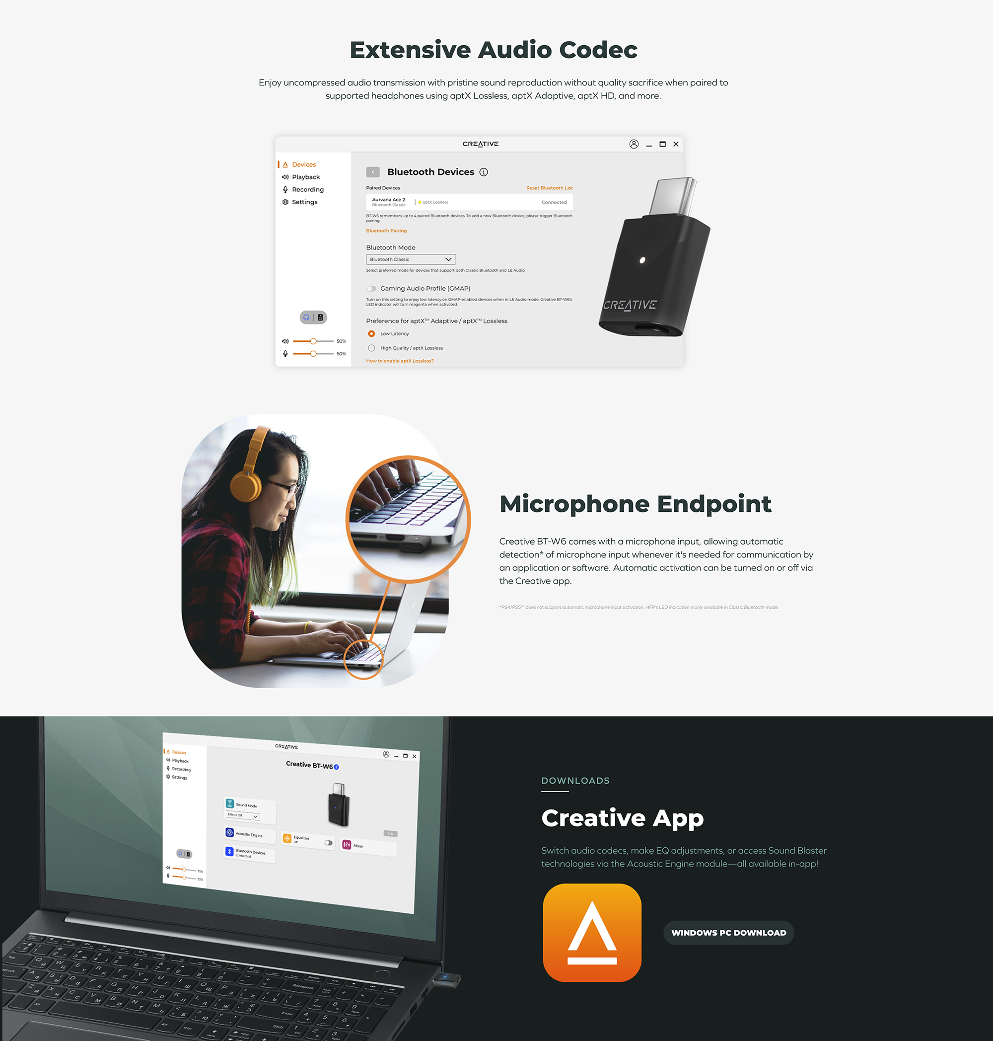 採用 Snapdragon Sound™ 技術,傳輸高達 24 位元 96 kHz 的高解析度音頻,包括藍牙® LE 音訊和經典藍牙5.4,以及精選的音頻編解碼器以改善聆聽效果