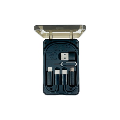 這款小巧便攜的旅行套裝,集齊您充電所需;只佔用極少空間,便搭載了各款應急充電線於一身。利用基本的C-C充電線及3個端頭,便可組合多達6種不同的充電線,切合各種充電情況。套裝內配備SIM卡插槽,助您穩妥地保管各種SIM卡。